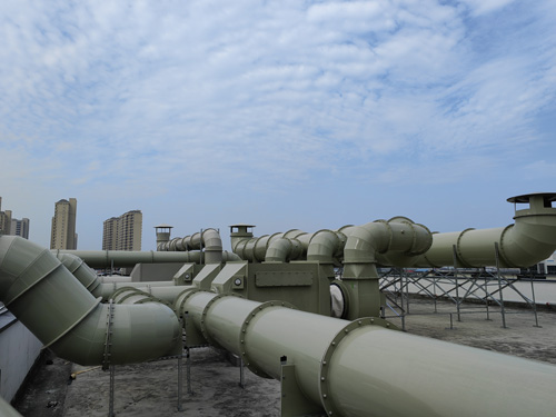 實驗報告室廢氣擺放 → 化學活化炭濾過器 → 引排煙風機 → 擺放